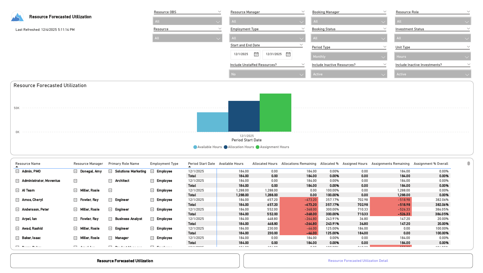 Resource Forecasted Utilization (Power BI)